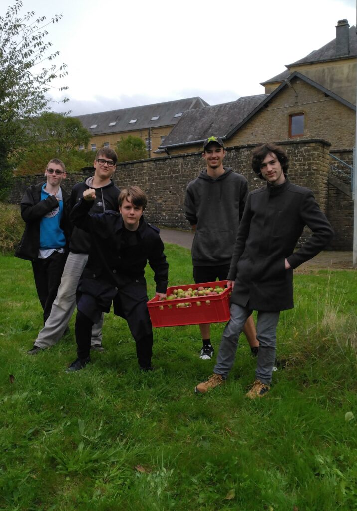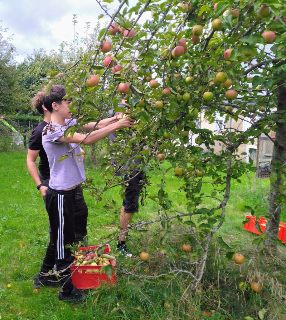 Les internes ont profité de notre verger pour leurs activités du mercredi. Après le ramassage de plus de 260kg de pommes, ils se sont rendus au pressoir pour en faire du jus qu’ils dégusteront lors de leurs petits-déjeuners à l’école. 58 cubis de 3 litres sont sortis du pressoir !