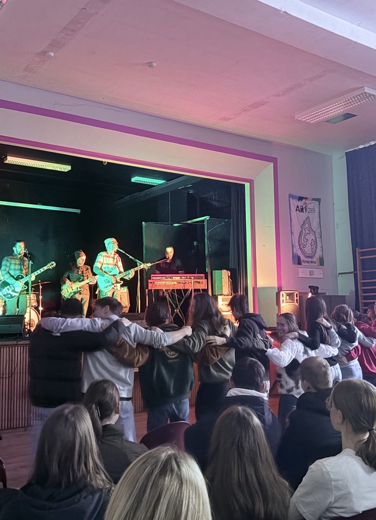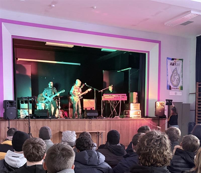 Ce jeudi 8 janvier, les élèves du degré supérieur ont pu profiter d’un concert au sein de l’établissement.Effectivement, les Jeunesses Musicales ont proposé à nos élèves de découvrir un groupe local, The Utopians : du reggae, du ska, de la chaleur, du baume au cœur et beaucoup d’énergie.Ce doux mélange a fait vibrer le cœur de nombreux élèves mais les a surtout fait se dandiner ! De plus, Nicolas, le chanteur, leur a fait découvrir l’histoire du reggae au travers de diverses anecdotes.