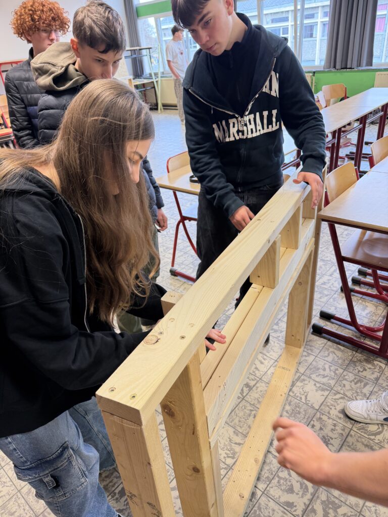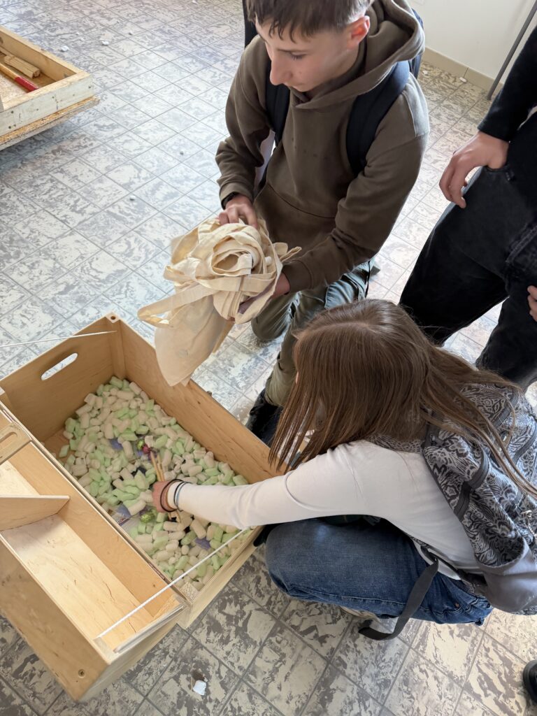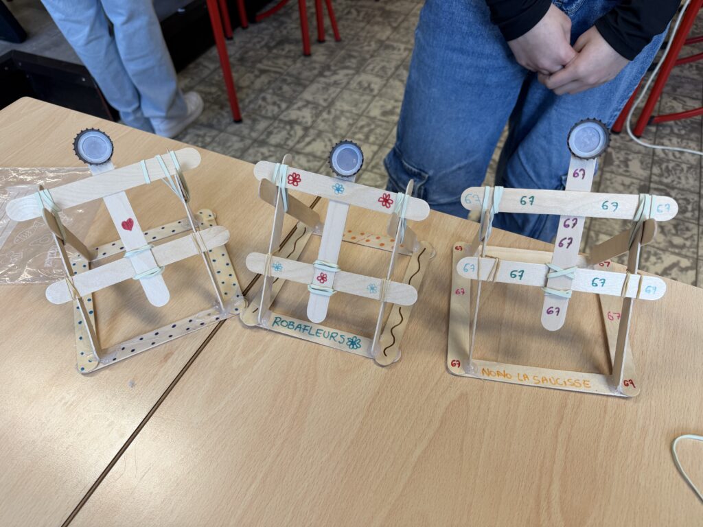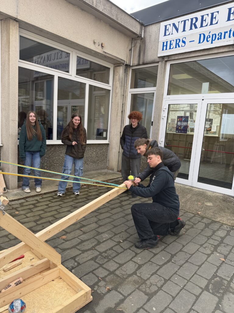 Atelier catapulte, où les élèves ont construit un modèle et testé une grande catapulte afin de mieux comprendre les forces et les transferts d’énergie.