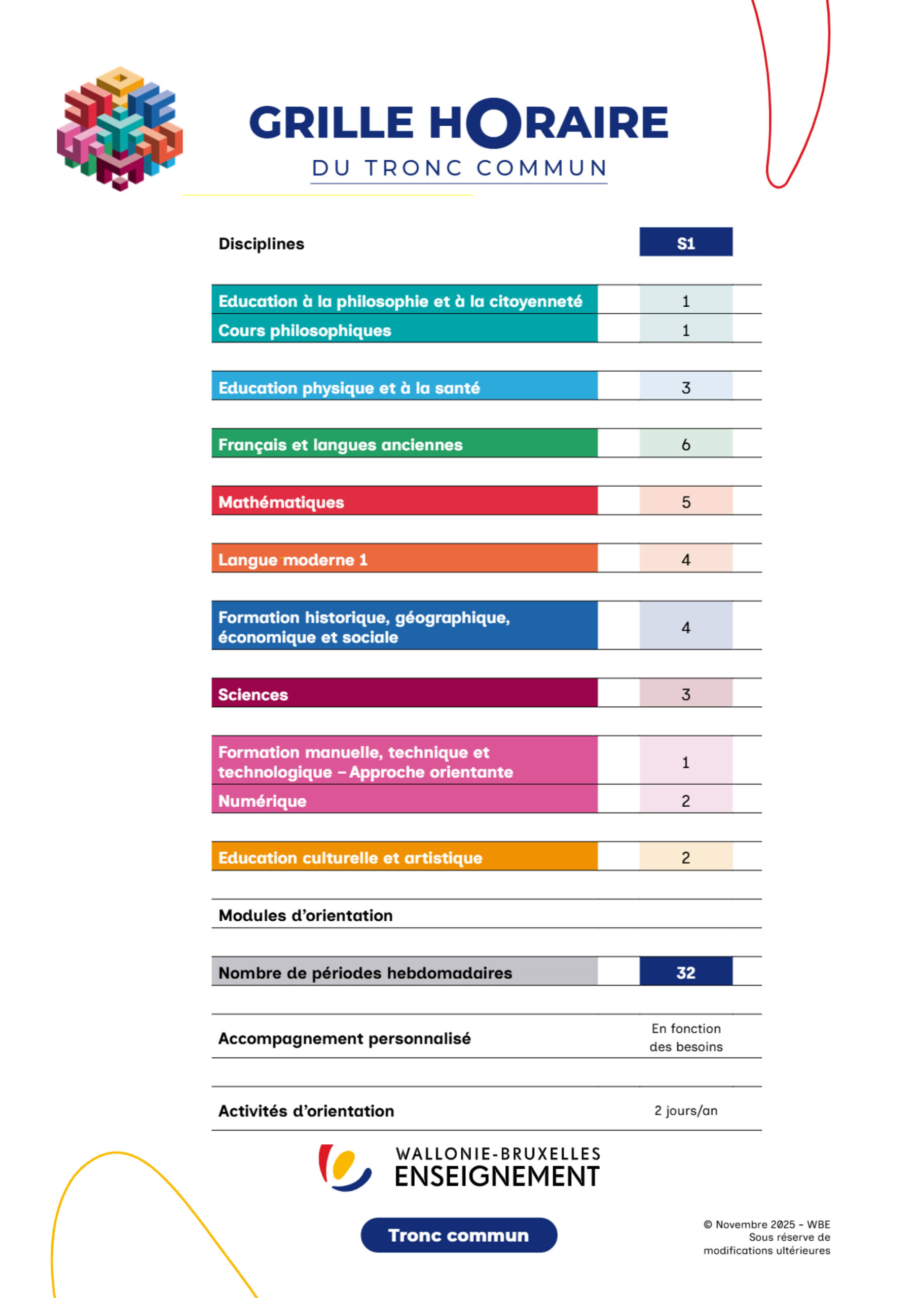 1. Grille horaire (sous réserve de modification)